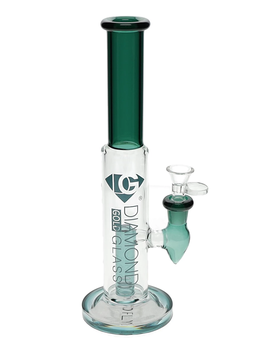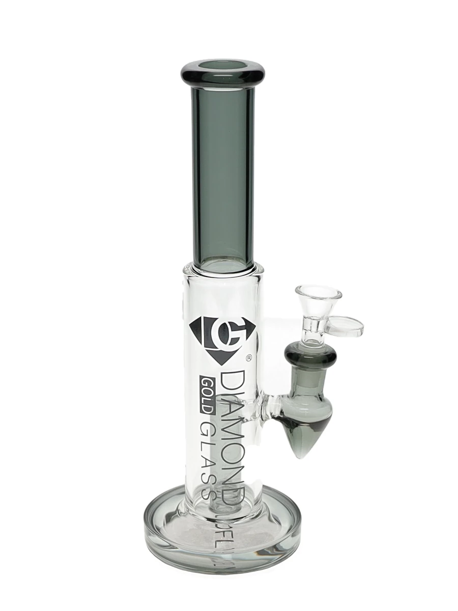 The 10″ Cylinder Straight Tube Water Pipe by Diamond Glass features an attached fixed diffused downstem percolator and a 14mm Male one-hole funnel bowl. This bong is perfect for everyday use by cannabis smokers and glass collectors alike. It has reasonable pricing and traditional design with additional diffusion.