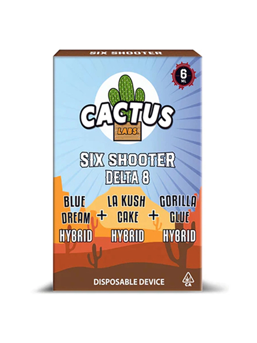 The Blue Dream | LA Kush Cake | Gorilla Glue Cactus Labs Six Shooter D8 Disposable is the ideal way to experience Delta 8 THC benefits. Are you an experienced vaper or a newcomer to Delta 8 THC? Its compact design makes it easy to use.