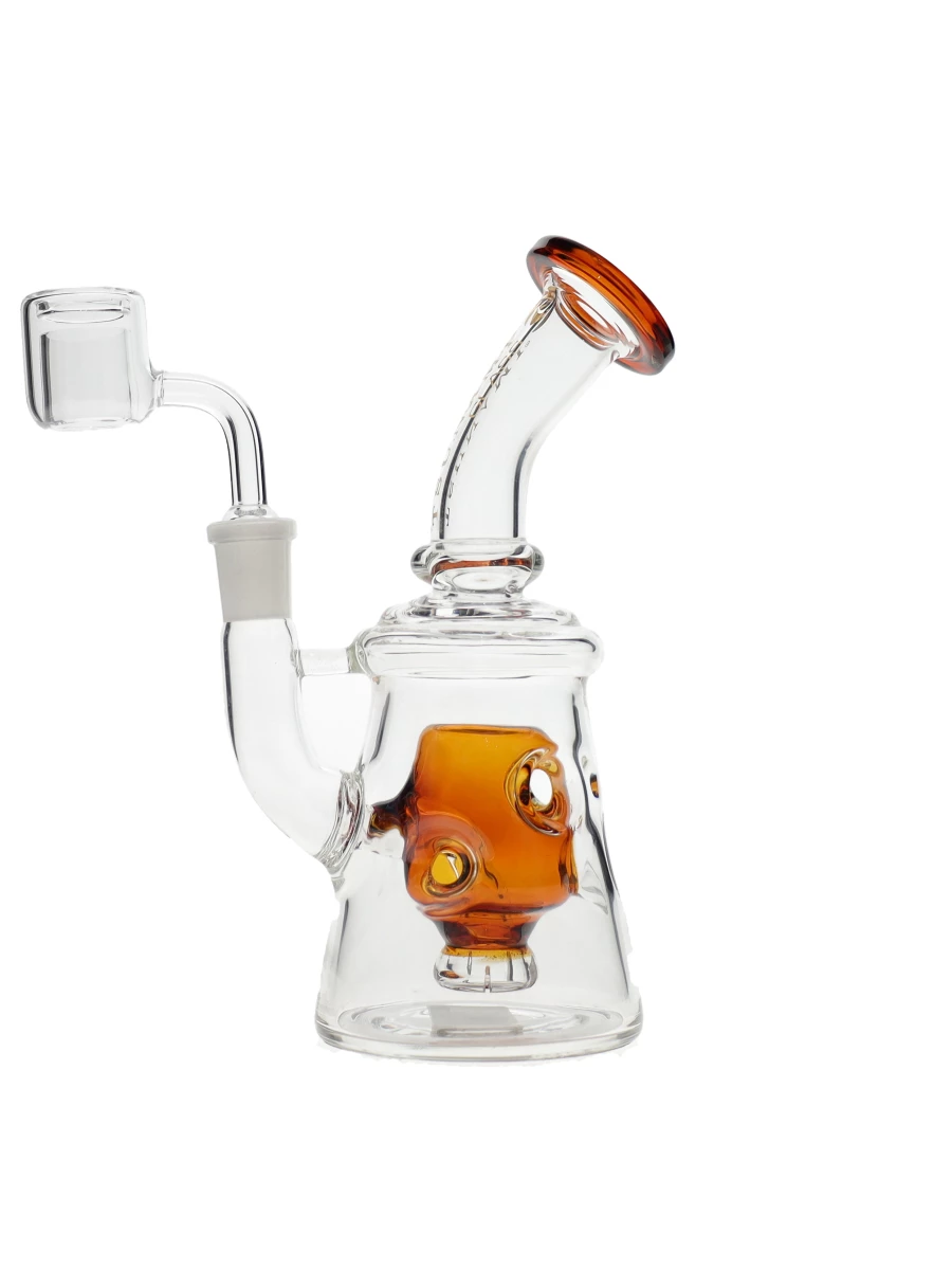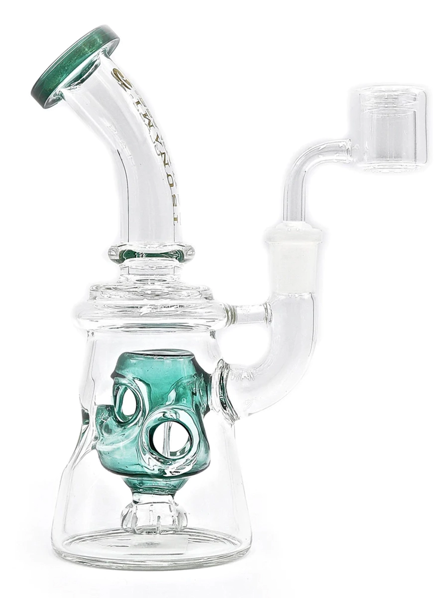 The pipe consists of premium glass that is incredibly durable, with a thickness of 4mm. Because the base is large and wide, the series of this product is highly indestructible and long-lasting. The glass has a 14.5mm male banger and a gold Tsunami Glass logo on its chamber.
