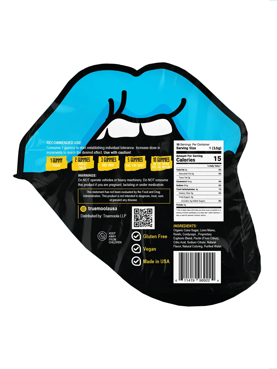 Blueberry Acai Truemoola Holy Moly Mushroom Gummies 10ct