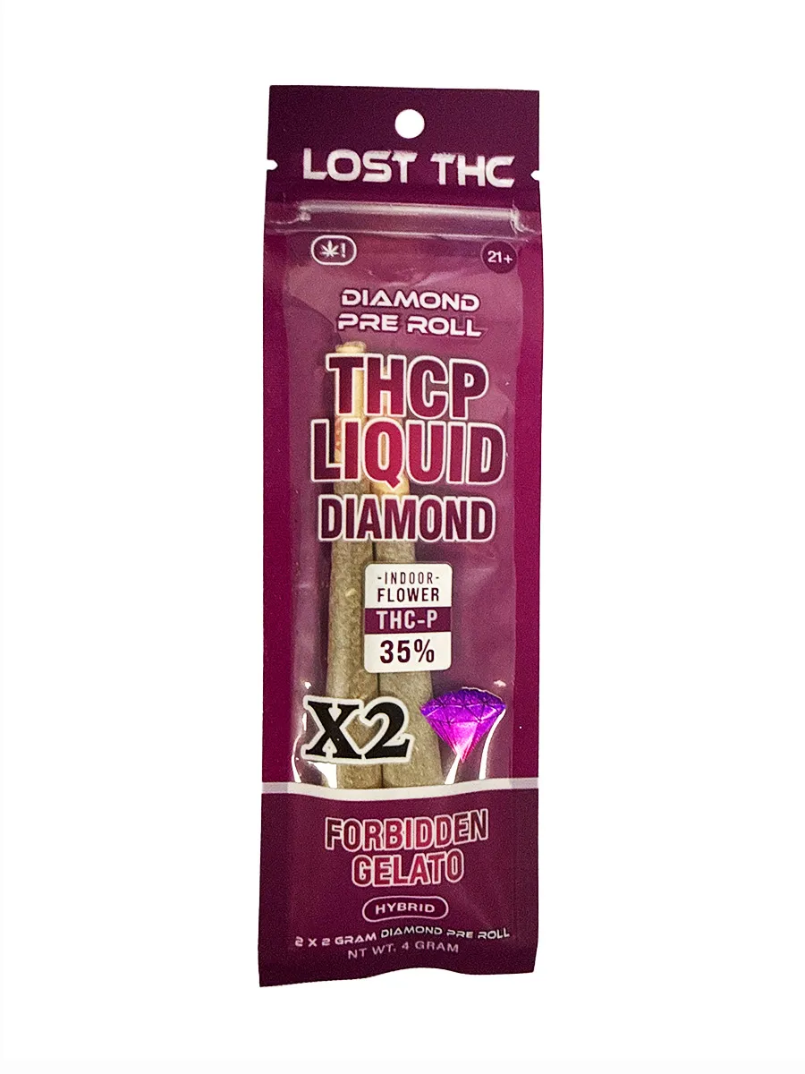 Lost THC Forbidden Gelato brings sweet dessert-like flavor together with heavy THCP strength. These 2x2G THCP diamond-infused pre-rolls offer rich, creamy terp notes and deeply relaxing effects that hit hard and last even longer.