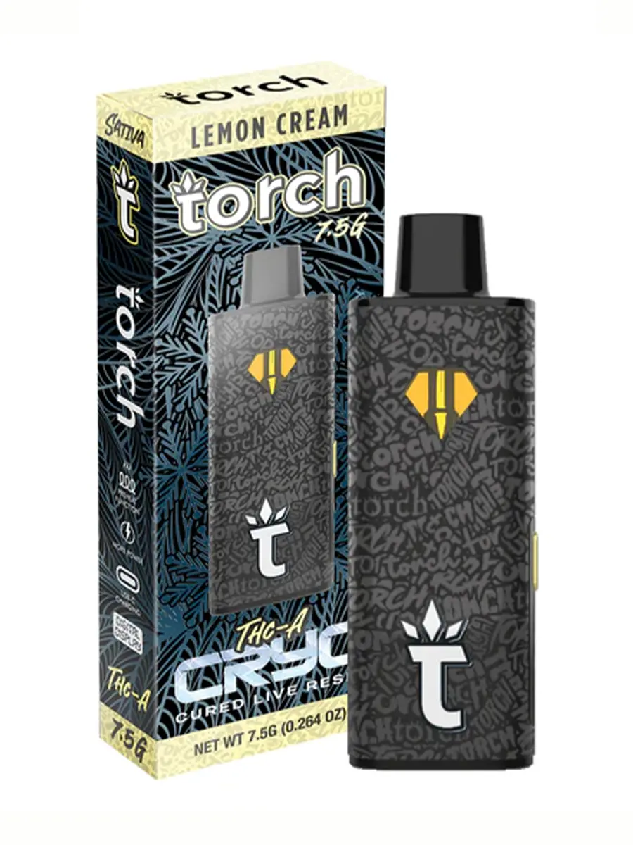 Lemon Cream Torch CRYO THC-A Live Resin Disposable 7.5g features a zesty lemon flavor with a creamy finish. This disposable vape contains 7.5 grams of high-grade THC-A live resin, offering a refreshing and uplifting experience. Perfect for those who enjoy citrus and creamy flavors, it provides a smooth and satisfying session. The sleek disposable design ensures convenience and ease of use, ideal for any occasion.