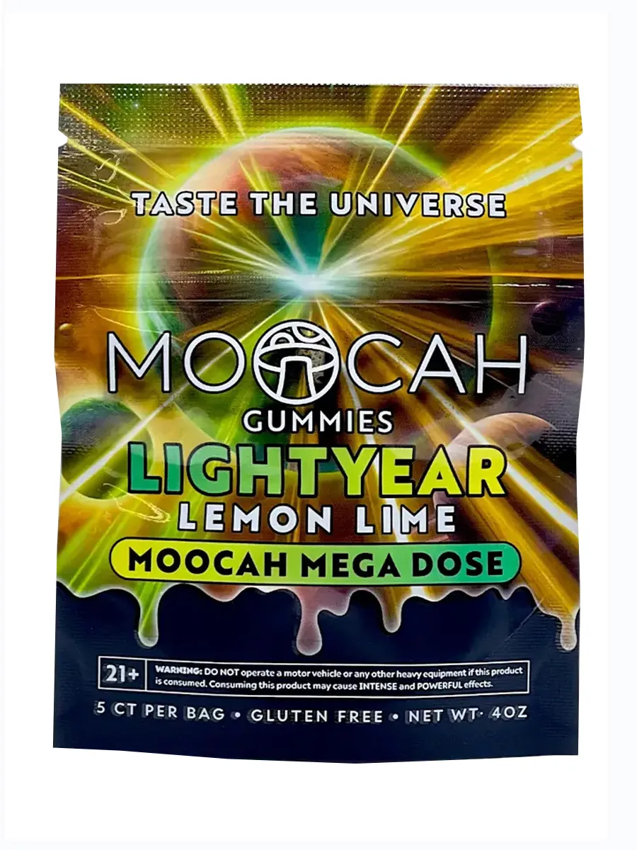 Blast off to new dimensions with Lightyear Lemon Lime Moocah Mega Dose Mushroom Gummies, your ultimate ticket to an out-of-this-world macro-dose experience. Each pack contains five intensely potent gummies, crafted for seasoned psychonauts seeking an expansive, mind-opening journey fueled by Moocah’s proprietary nootropic mushroom blend.