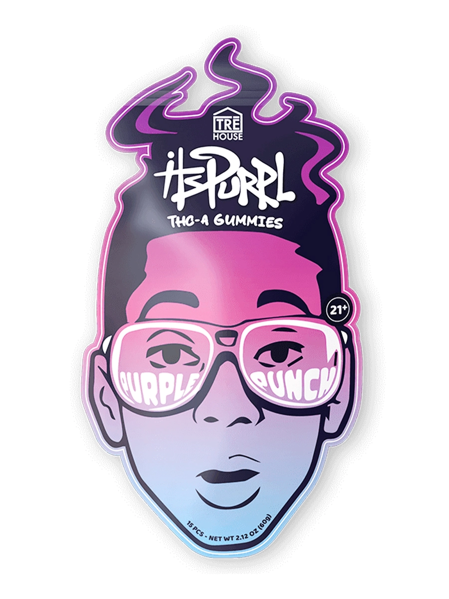 Experience the flavorful euphoria of Its Purpl Purple Punch Tre House THCA Gummies, a collaboration between ItsPurpl and Jaleel White. These high-potency gummies are infused with four hemp-derived cannabinoids, including the precursor molecule THCA, to offer a unique and unforgettable experience.