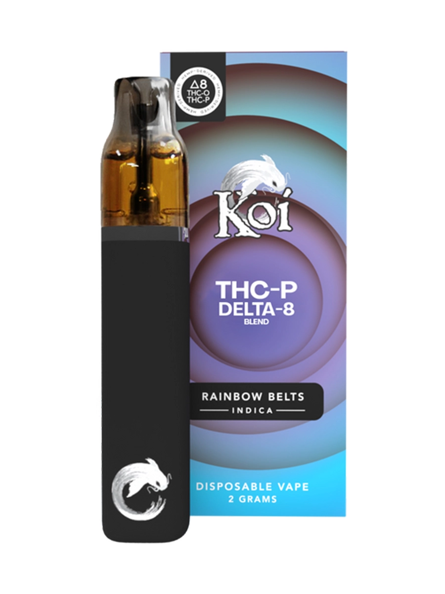 Experience a spectrum of relaxation and euphoria with Rainbow Belts Koi Delta 8 THC + THC-P Vape 2G. This innovative disposable vape bar combines the uplifting effects of delta-8 THC with the profound relaxation of THC-P, creating a harmonious blend that soothes the mind and body.