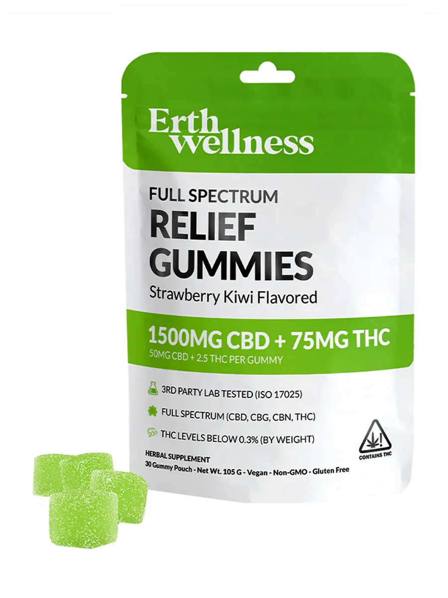 Strawberry Kiwi Erth Wellness Relief Gummies Full Spectrum CBD+THC 30ct 1575MG