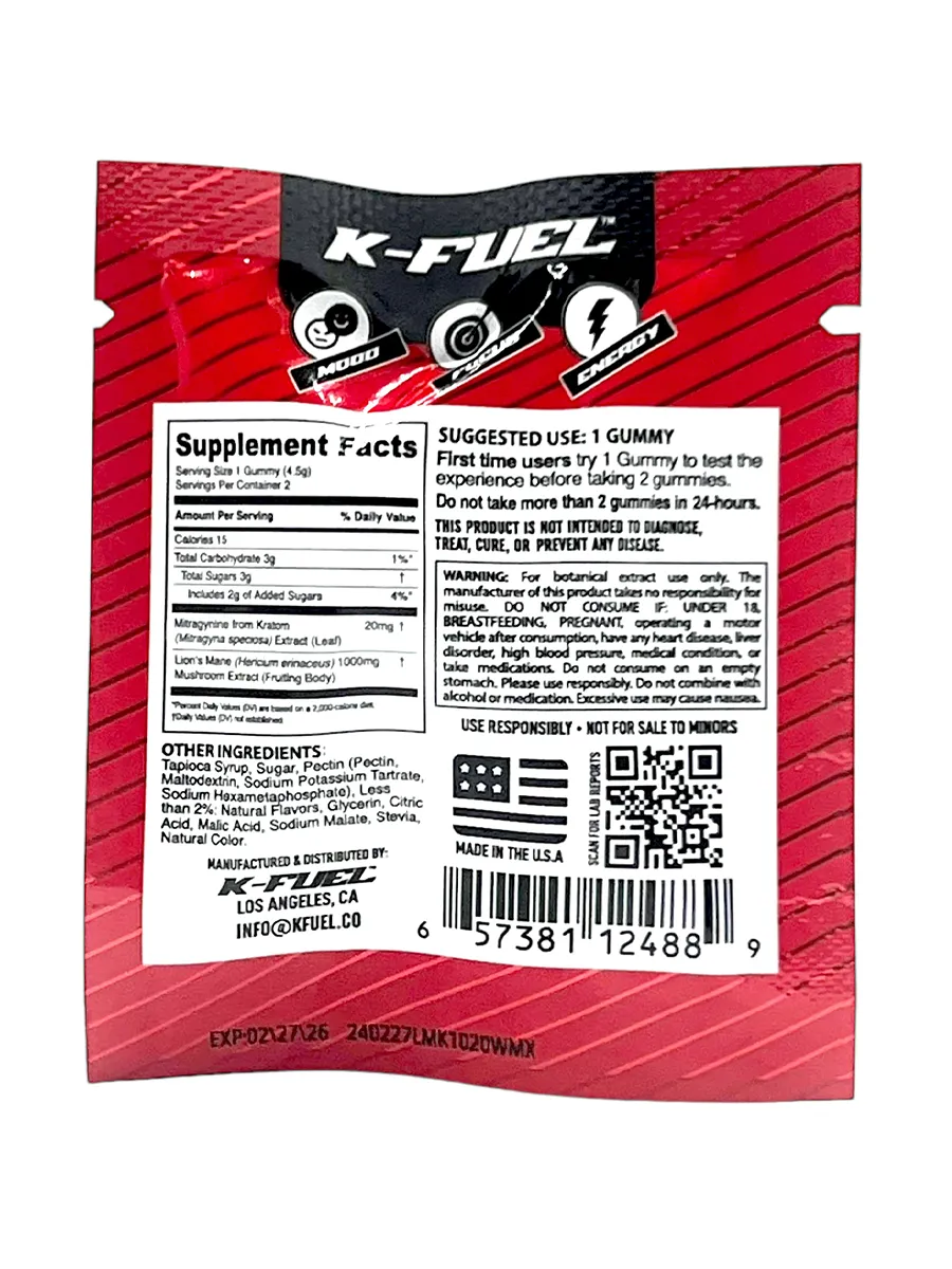 Watermelon Citrus K-Fuel Kratom Lion’s Mane Mushroom Gummies 2ct