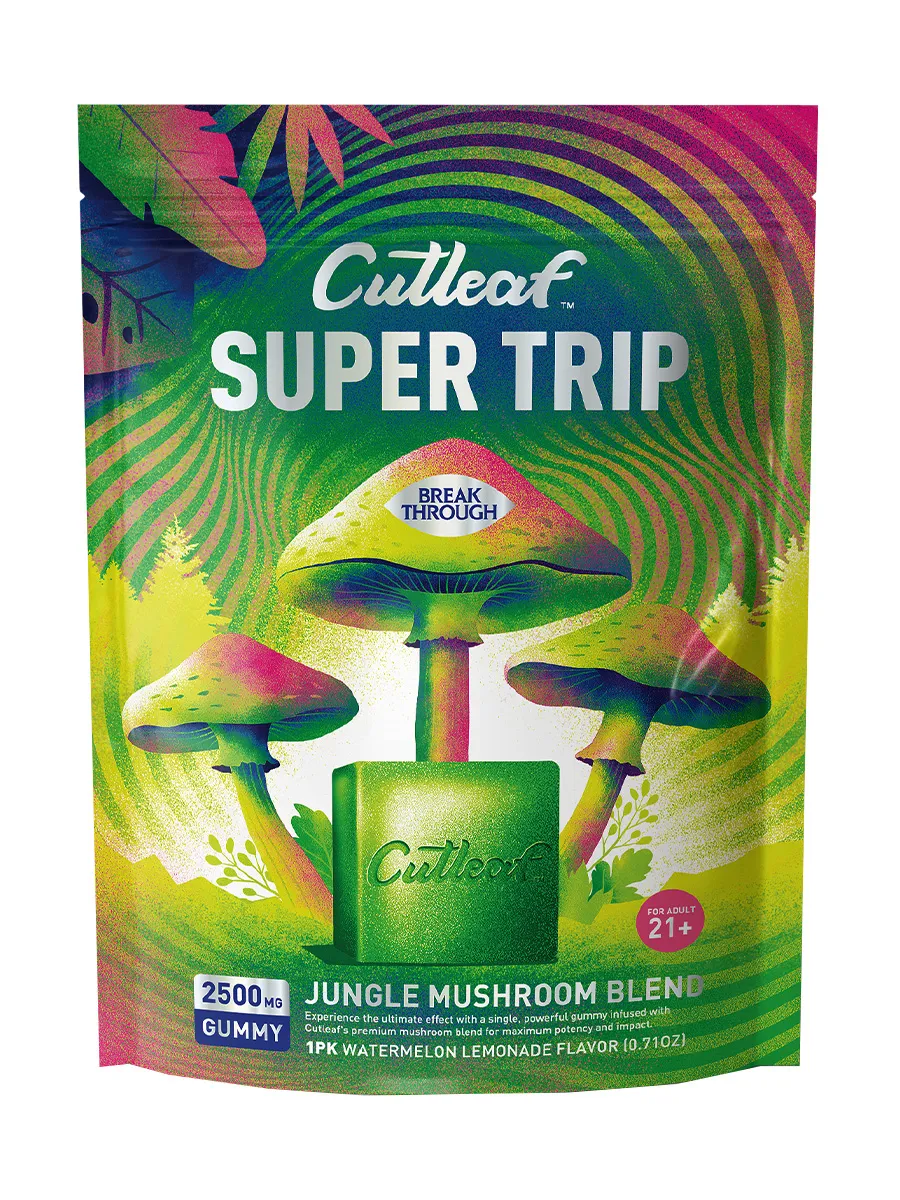 Cool off with the refreshing taste of Watermelon Lemonade Cutleaf Super Trip Jungle Mushroom Blend Gummies 2500MG. Sweet, tangy, and powerful, this gummy is the perfect companion for your edible experience.